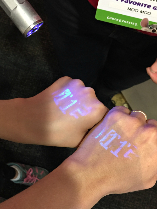 Combined of my favorite things about Chuck E. Cheese's is their group sign in and check out, especially when you have little kids with you. They check each someone in your grouping with a angry light to make sure all our numbers match!